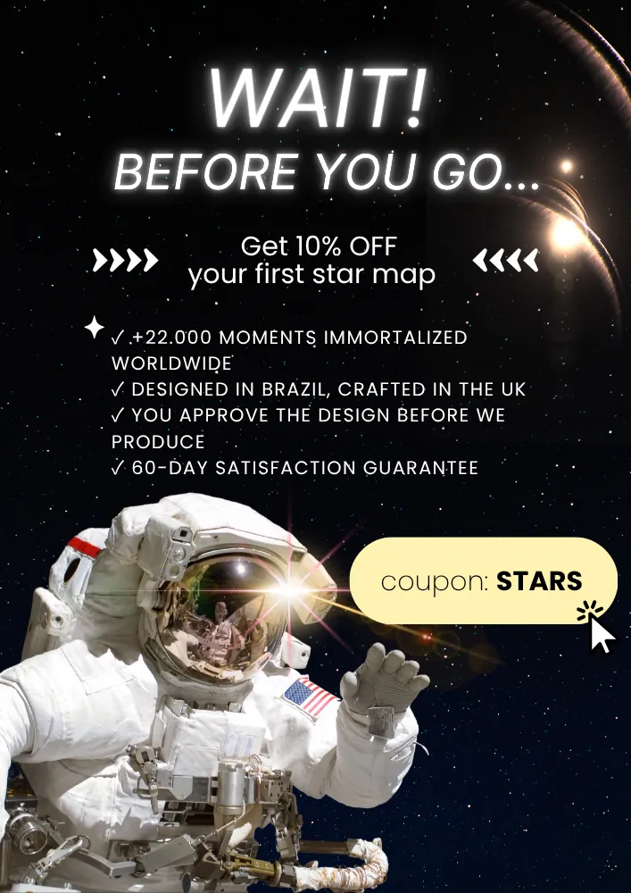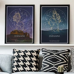 We transform the beauty of the night sky into art, going beyond the simple star map. We were the first to create personalized designs, full of meaning and emotion. Browse through our gallery and be inspired by the endless possibilities of immortalizing your moments under the stars.